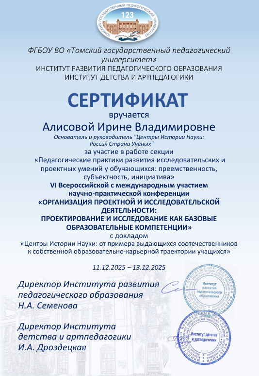 Подсекция 2.2 Общее и дополнительное образование. Мой доклад Центры Истории Науки: от примера выдающихся соотечественников к собственной образовательно